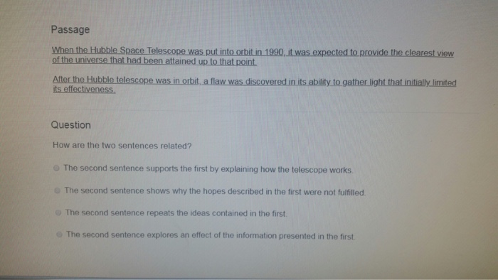 Solved: Passage When The Hubble Space Telescope Was Put In... | Chegg.com