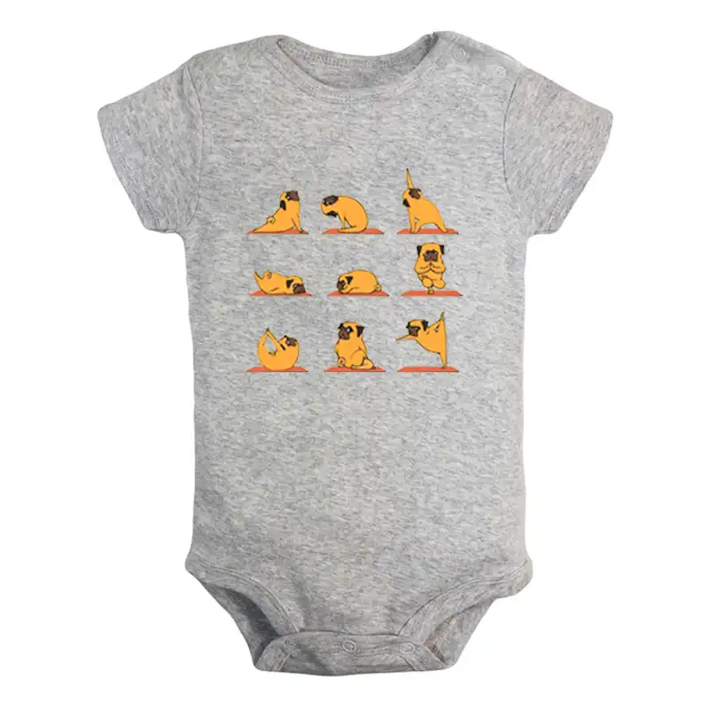 Pug Yoga dibujo animado adorable y divertido pug haciendo yoga en una estera trajes para bebés recién nacidos, mono con impresión infantil, ropa|Bodis| - AliExpress